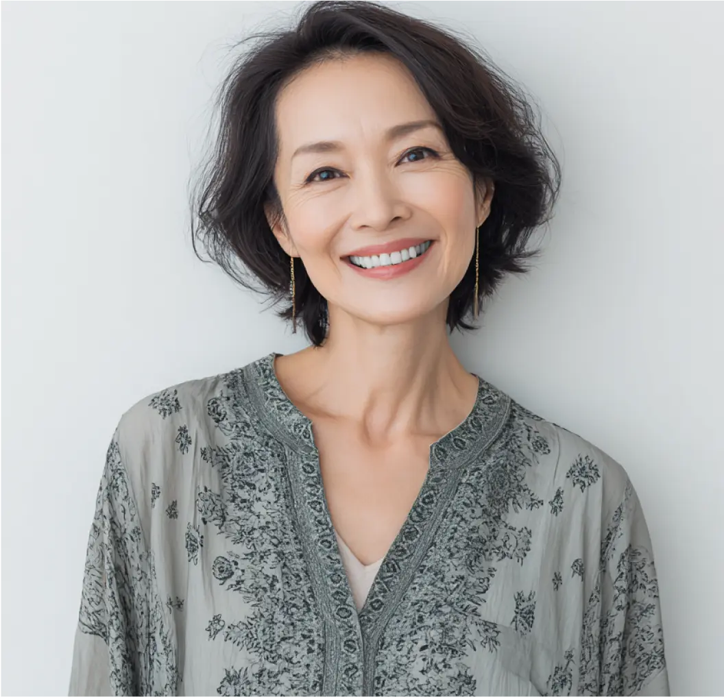 噛み心地インプラントによって噛む力を取り戻すだけでなく、自然な口元や表情も回復。機能性と見た目の両面から笑顔の若返りを実現します。