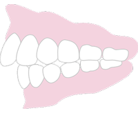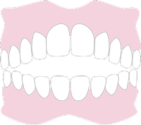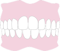 深い過蓋咬合ともいい、下の歯が隠れるほどに上の前歯が被さった歯並びです。顎関節症になりやすくなるといった問題があります。 -