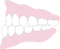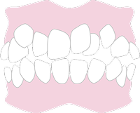 デコボコ叢生ともいい、歯が重なったり斜めに生えたりした状態です。八重歯もこの一種で、歯磨きがし難く虫歯のリスクが高まります。 -